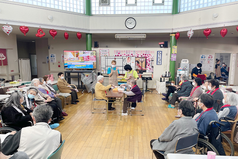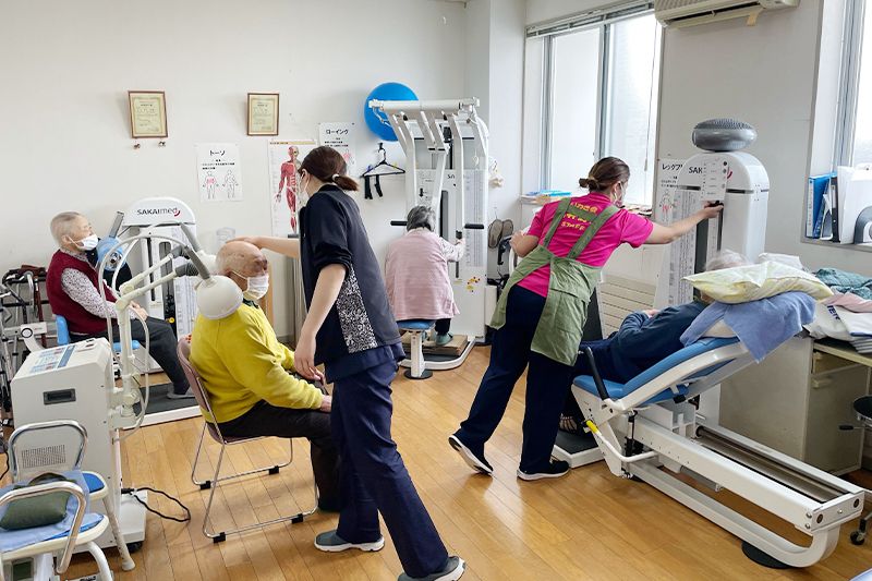 在宅の方に日帰りでご利用いただき、食事・入浴・健康チェック・リハビリテーション・レクリエーションなどを行い、機能の回復や維持を図ります。